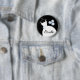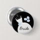 Pretty bridal themed button badge featuring a stylised wedding gown and flowers in shades of blue, black and white. A customisable design for you to personalise with your own text, pictures and ideas.