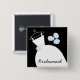 Pretty bridal themed button badge featuring a stylised wedding gown and flowers in shades of blue, black and white. A customisable design for you to personalise with your own text, pictures and ideas.