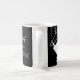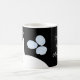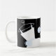 Pretty bridal themed mug in shades of blue featuring a stylised wedding gown and flowers on a black background. A customisable design for you to personalise with your own text, pictures and ideas. Artwork created by Jess Perry.