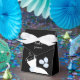 Pretty bridal themed favour box in shades of blue featuring a stylised wedding gown and flowers on a black background. A customisable design for you to personalise with your own text, pictures and ideas.