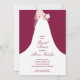 A bride in her wedding dress on a cranberry red (or any colour) background, perfect for elegant bridal shower invitations. (Rose pattern on the back can be deleted.) MATCHING items in our store.