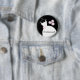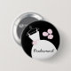 Pretty bridal themed button badge featuring a stylised wedding gown and flowers in shades of pink, black and white. A customisable design for you to personalise with your own text, pictures and ideas.