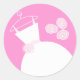Pretty pastel bridal themed sticker featuring a stylised wedding gown and flowers in shades of pink and white. A customisable design for you to personalise with your own text, pictures and ideas.