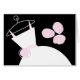 Bridal themed greetings card with a pretty design in shades of pink, black and white featuring a stylised wedding dress on a hanger accompanied by a bouquet on the front, and pale pink on the inside. A customisable design for you to personalise with your own text, pictures and ideas.