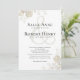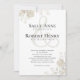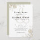 This design features an elegant, wedding invitation, a simple a classic, rustic, calligraphy script invitation with classy modern minimal style, simple typography ampersand an greenery.