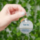 Create a unique guest favour for your beach wedding with this inexpensive keychain. The key ring features a photo of a wave rolling towards the shore. "Thank You", the bride and groom's names, and the wedding date can quickly be customised. The back features a solid blue colour with room for photos or an additional message.