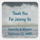 Seal the favour bag or thank you note for your beach wedding with this inexpensive sticker. The square sticker features a photo of a wave rolling towards the shore. "Thank You For Joining Us", the bride and groom's names, and the wedding date can quickly be customised.