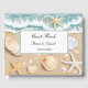 This guest book is shown in a romantic beach theme print.