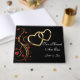 This guest book is shown in black with a lovely two hearts print with custom sample names.