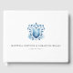 Invite your wedding guests to share their wishes and wisdom with this elegant wedding guest book featuring watercolor crest in shades of blue. Use the template fields to personalise with your monogrammed initials, names and wedding date. The book reverses to a solid dusty blue colour. To see more wedding designs visit www.zazzle.com/dotellabelle