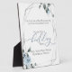 Dusty Blue Floral to match your wedding theme. A request of your guests to Please sign a building block for your wedding guest book memories. Watercolor roses, leaves and berries in modern chic dusty blue surround a geometric terrarium style silver frame with sage greenery. Customise text, font style, colour and size. Original artwork created for the BarefootBride™ by © WhimsicalArtwork™ - This is part of a complete Wedding Stationery Suite with matching wedding, baby shower and other event stationery.