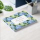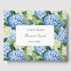 This guest book is shown in a romantic blue hydrangea print.