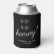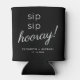 Give a wedding toast and a fun souvenir keepsake gift to your wedding guests with this custom black can cooler. "Sip Sip Hooray" is written in minimal modern white typography and white script. Add your first names and wedding date underneath.