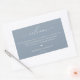 Elegant and modern wedding guest welcome bag label. Template provides lines for your message, names and event date. White typography on dusty blue background.