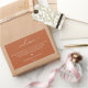 Elegant and modern wedding guest welcome bag label. Template provides lines for your message, names and event date. White typography on rust orange background.