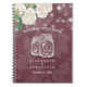 Wedding Guestbook Templates - Elegant Script, Mason Jars, Hydrangea Flowers and String Lights on Burgundy Red Floral Linen Background.