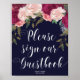 wedding guestbook sign navy pink floral