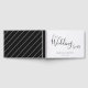 This wedding guestbook features a stylish and minimal design in black and white accented with elegant handwritten style calligraphy. Custom text allows you to add the names of the couple and their wedding date. The backside is black with a diagonal white stripe pattern.