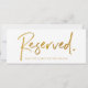 City Script / Typography Wedding Reserved Card Sign (to hang) | Faux Gold Foil: Hang this modern reserved sign with a pretty ribbon on chairs or prop up on tables at your reception.