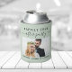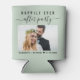 Perfect sage green can cooler keepsake favours for your post-elopement or wedding reception guests with your photo and "Happily Ever After Party" in a mix of simple typography and trendy script, and your first names and wedding date.