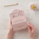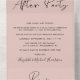 Elegant blush pink elopement or small wedding announcement combined with a post-wedding reception invitation. "Happily Ever After Party" is written in a mix of simple typography and a modern script. A tear away RSVP postcard provides a convenient and eco-friendly and envelope-free response from your guests.