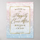 Wedding Welcome Sign | Real Foil Accents - Stunning shimmering sparkly Ocean waters glistening in the setting sun - in pale shades of dusty rose pink and dusty blue - text appears on a sheer white sparkling gold edged frame that shows the design but allows the text to easily be read. Accented with beautiful elegant handwritten calligraphy. Easy to personalise wedding template