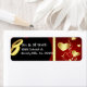 Gorgeous golden wedding rings on a black heart with deep reds & burgundy and golden hearts with a golden bow. A beautiful elegant wedding set!