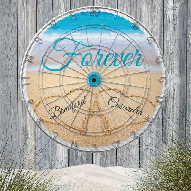 Wedding Hearts in Sand Forever reception Games Dart Board