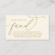 Celebrate the beginning of your journey together with our romantic elegantly crafted "honeymoon fund" in Yellow Gold theme wedding invitation enclosed card. Featuring a sophisticated blend of modern script and romantic allure, each card is meticulously designed to convey the essence of your special day. Perfectly suited for couples seeking a unique way to share their honeymoon dreams and wish, this card invites your loved ones to contribute towards unforgettable experiences with gifts in cash. Whether nestled in a luxurious envelope or presented alongside your wedding invitations, our card adds a touch of enchantment to your celebration, promising cherished memories that last a lifetime.