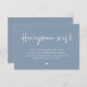 Celebrate the beginning of your journey together with our elegantly crafted "honeymoon wish" wedding invitation dusty blue theme enclosed card. Featuring a sophisticated blend of modern script and romantic allure, each card is meticulously designed to convey the essence of your special day. Perfectly suited for couples seeking a unique way to share their honeymoon dreams, this card invites your loved ones to contribute towards unforgettable experiences. Whether nestled in a luxurious envelope or presented alongside your wedding invitations, our card adds a touch of enchantment to your celebration, promising cherished memories that last a lifetime. Designed by TeeshaDerrick.