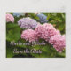 Elegant hydrangea blooms in pinks, mauve and soft blue colours accent this postcard. A beautiful postcard for a friend or for your own collection.