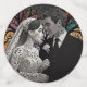 Wedding Couple made of paper set on a background of trees of many colors.