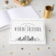 Make an impression with a one-of-a-kind wedding guestbook. This Houston-themed wedding guest book features a unique modern deco skyline of the city towards the bottom and the names of the wedding couple, the city name, and the marriage date above it.