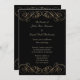 Elegant vintage wedding invitation design featuring decorative gold scrolls top and bottom on a black background. This classic design comes in several colour schemes. If you would like custom colours just e-mail me at mshake5918@yahoo.com. No extrra charge for colour changes. This design also comes on many other paper products and postage to suit all your wedding set needs.