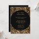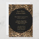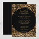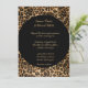 This romantic classic wedding invitation is shown in a black safari leopard print in a modern layout with text in a lovely script print and with script text highlighting the names of the Bride and Groom.