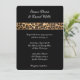 This romantic classic wedding invitation is shown in a black safari leopard print in a formal layout with text in a lovely script print and with script text highlighting the names of the Bride and Groom.
