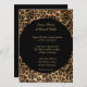 This romantic classic wedding invitation is shown in a black safari leopard print in a modern layout with text in a lovely script print and with script text highlighting the names of the Bride and Groom.