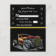 Hot Rod party wedding RSVP has a old car. At bottom to the middle and a black background with a place to put all your INFO text.