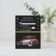 Hot Rod party wedding RSVP has a old car. At bottom to the middle and a black background with a place to put all your INFO text.