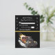 Hot Rod party wedding RSVP has a old car. At bottom to the middle and a black background with a place to put all your INFO text.