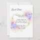 This wedding invitation is shown in a classic layout on a white background colour with a lovely blue hydrangeas and pink roses art print.