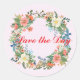 Wedding invitation envelope stickers, pink wreath classic round sticker