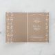 This adorable wedding invitation has a vintage feel. It features a white flowers and swirls pattern running vertically down the side which also carries onto the inside and back. A brown paper texture background has been used which complements the white pattern and text. Personalise with your details of your big day. Other wedding stationery is also available in this design.