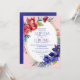 Watercolor floral arrangement of deep blue/purple flowers complimented with red flowers with a gold oval frame. Deep purple backside with red flowers (optional deep red watercolor background). All type and background colours are customisable.