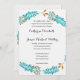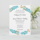 Beautiful blue and gold floral wreath wedding invitation. This formal standard wedding invitation is worded for weddings hosted by the parents of the bride. It is a simple white invitation, lightly patterned.