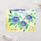Wedding invitation with blue watercolour roses accented with sage and a mix of greens with soft butter yellow, personalise the text on front and back to suit your special day, all text is removable.