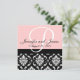 Wedding Invitation Monogram Names Date Pink Damask
