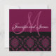 Wedding Invitation Monogram & Names Wine Damask