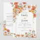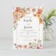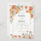 This wedding invitation features a stunning floral design with a mix of soft, warm-toned flowers that beautifully frame the edges. The elegant arrangement of blooms gives the invitation a timeless, romantic feel. The names of the couple are prominently displayed in a bold, stylish font, with a delicate gold accent between them, adding a touch of sophistication.