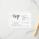 This is the beautiful Modern Romantic RSVP (Respond) Enclosure Card, in Black font, where you can edit, change colour and format it as per your design requirement, with meal options, reserved seats, number attending and song request option.